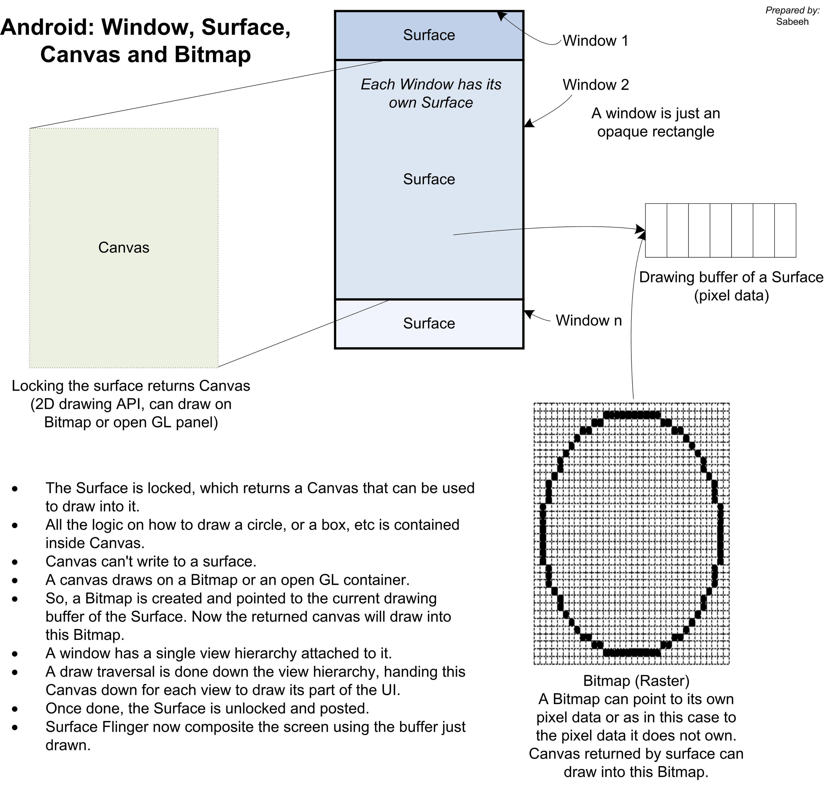 Window마다 각각 Surface를 갖는데, 이 Surface에 view들을 Canvas에 그리는 방식
