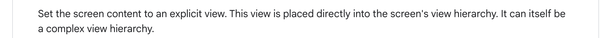 화면 내용을 명시적 view로 설정합니다. 이 view는 화면의 view 계층 구조에 직접 배치됩니다.