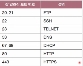 - 포트 : 네트워크 상의 에플리케이션 식별정보