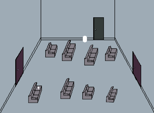 게임을 실행하면 의자 위에 있는 반짝임 효과가 0.5초 간격으로 fade in/out하며 반짝거린다.