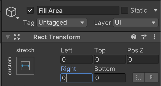 이럴 땐 Fill의 기본 설정인 Width = 10을 0으로 바꿔주고, Fill Area의 Left와 Right도 0으로 바꿔주면 된답니다.