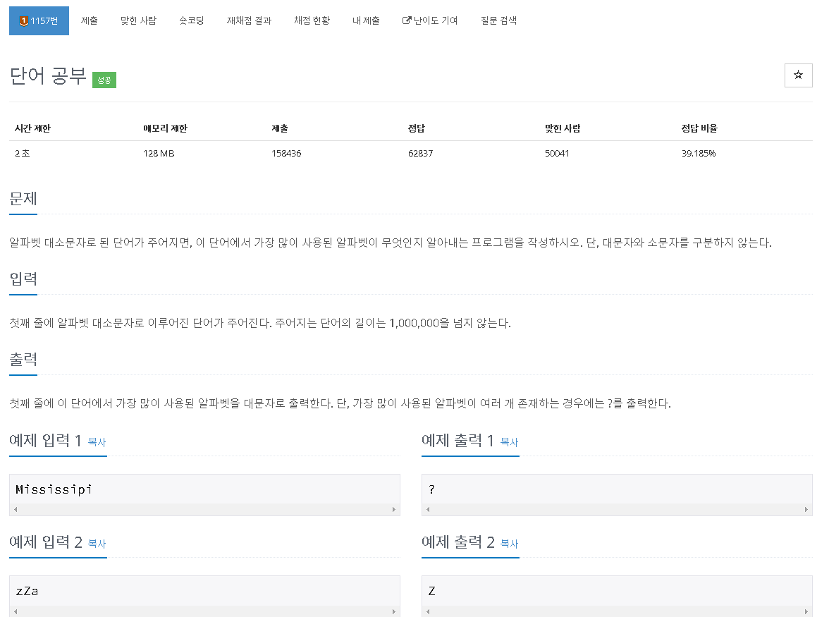 링크 : https://www.acmicpc.net/problem/1157