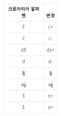 변경 부분을 리스트로 해야하는데 크로아티아 알파벳을 그대로 붙여넣기를 하고 있었습니다...