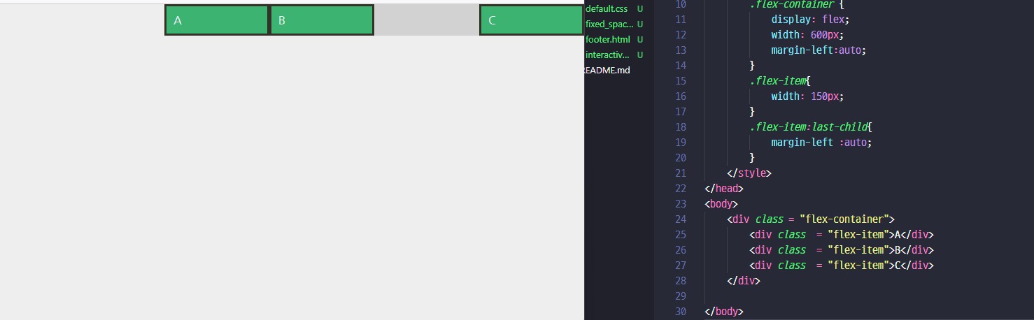 그렇기 때문에 3개의 요소 중 하나의 요소만 오른쪽으로 붙이고 싶을 때 다음과 같이 작성할 수 있다.