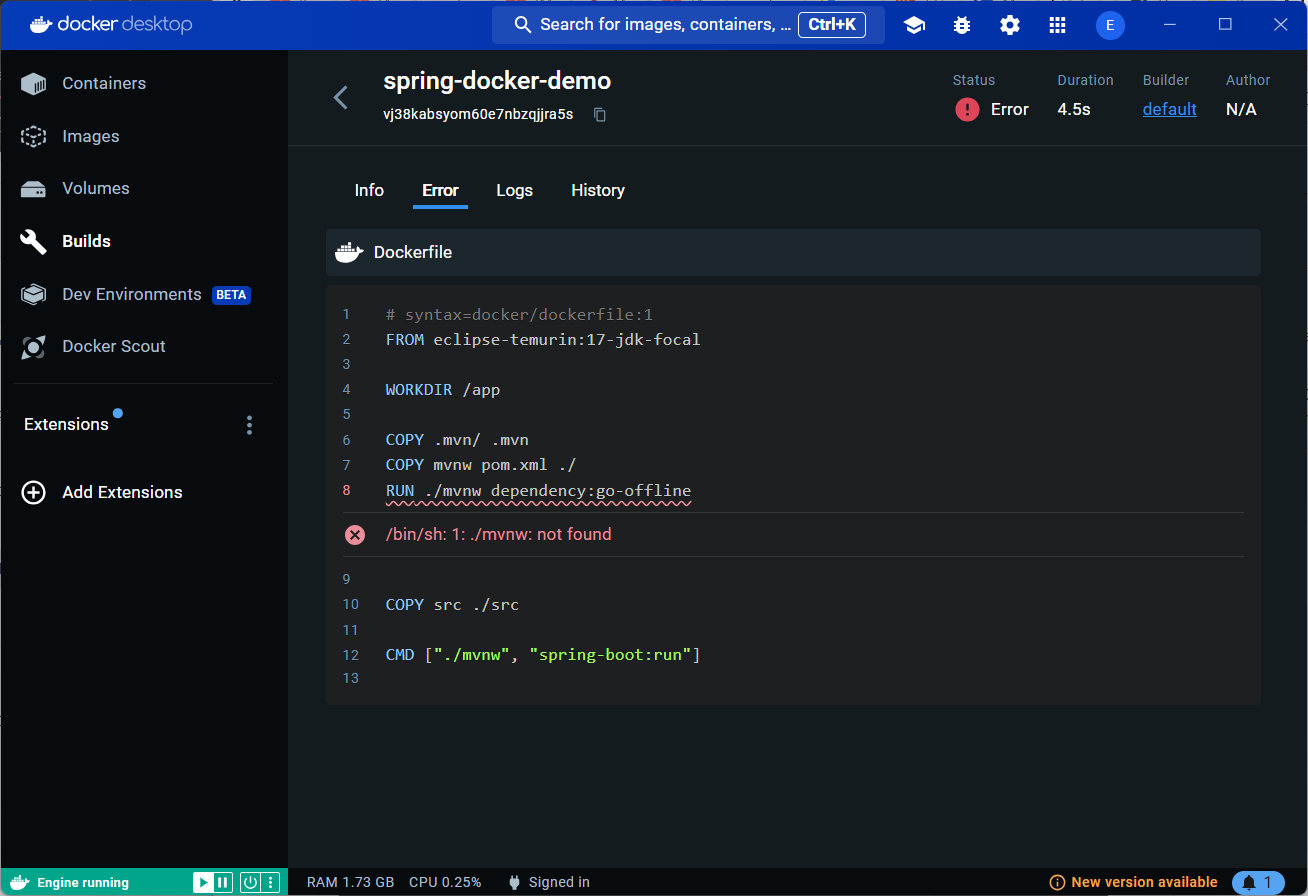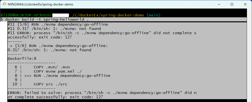 mvnw 파일의 \r\n을 \n으로 바꾼다.