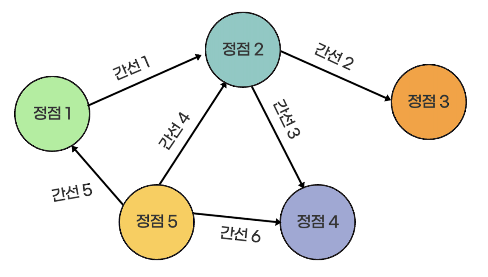 요렇게 생긴 정점과 간선으로 이루어진 그래프가 있다고 해보죠.