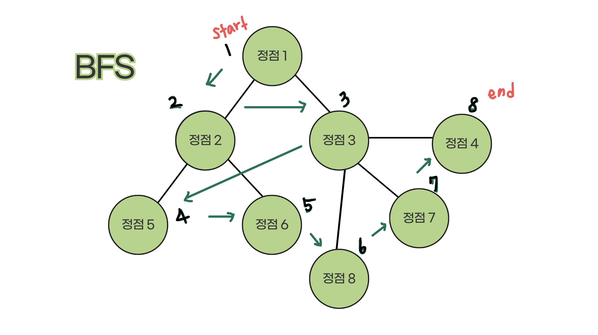 정해진 규칙에 의해 시작 정점에서 멀어지는 방향을 우선으로 탐색하는 방법