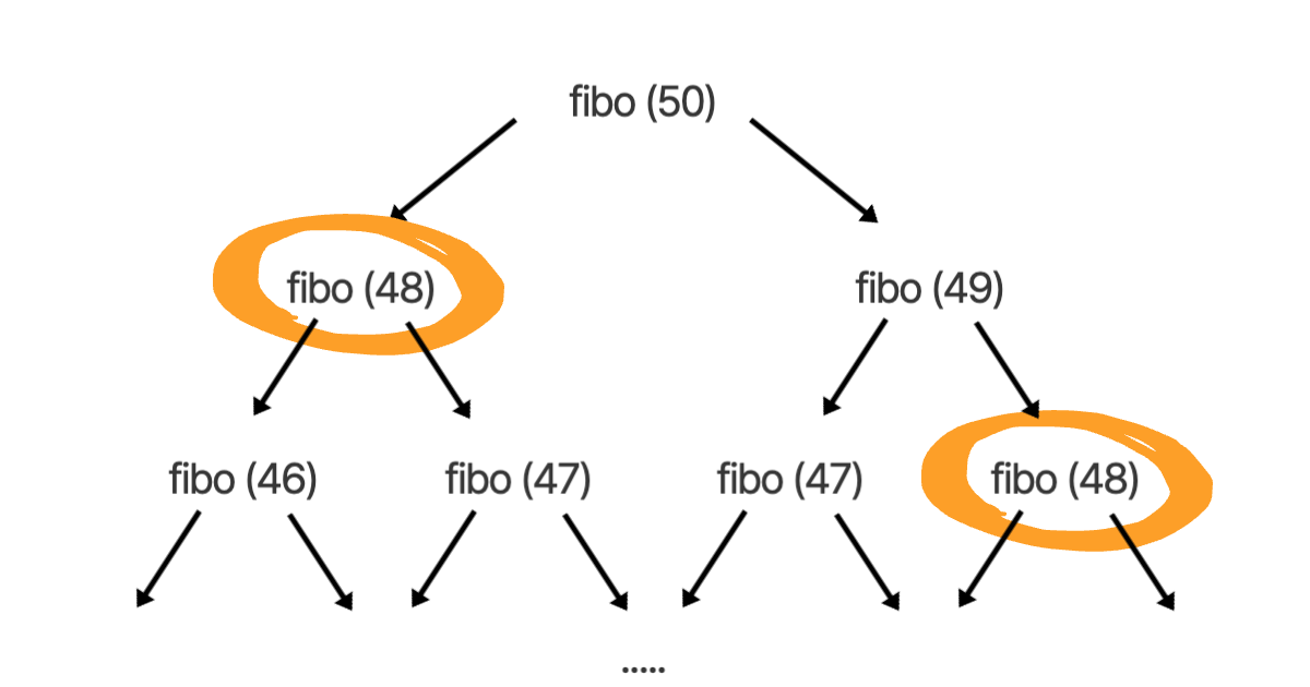 fibo(50) 을 호출하면 재귀적으로 계속 꼬리를 물어 함수를 호출하는데요,