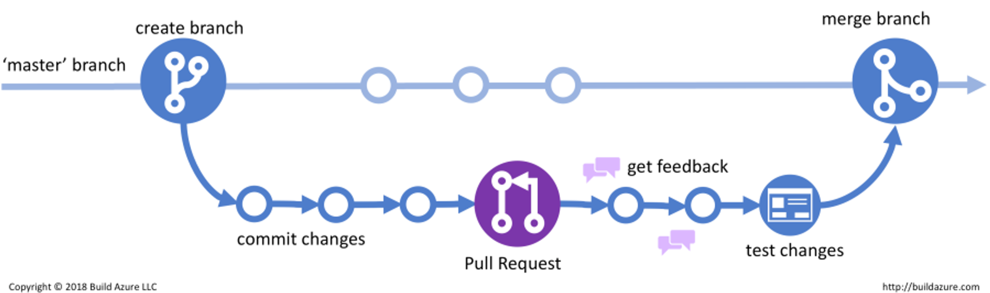 또 다른 특징은 Topic 브랜치의 모든 커밋은 기능이 완성되지 않았더라도 꾸준히 Push 한다는 것이다. 이것은 곧 구성원끼리의 끊임없는 커뮤니케이션을 가능하게 해준다. 또한, 이것은 Github의 PR과 이어진다.