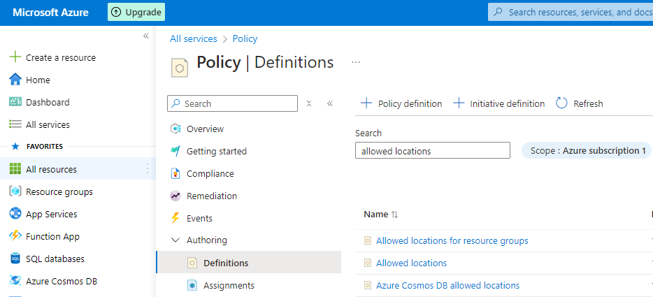 Definitions 를 선택하고 allowed locations 를 검색하여 선택합니다.