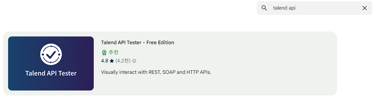 테스트를 위해 크롬의 확장 프로그램인 Talend API Tester