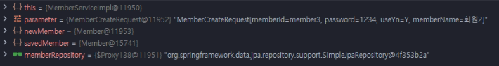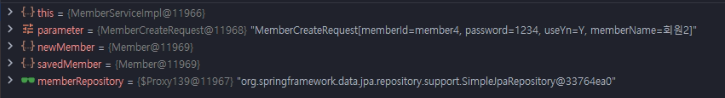save method 호출 라인에 디버깅 포인트를 설정하고 id 를 member3 으로 변경 후 재요청 해봅니다.