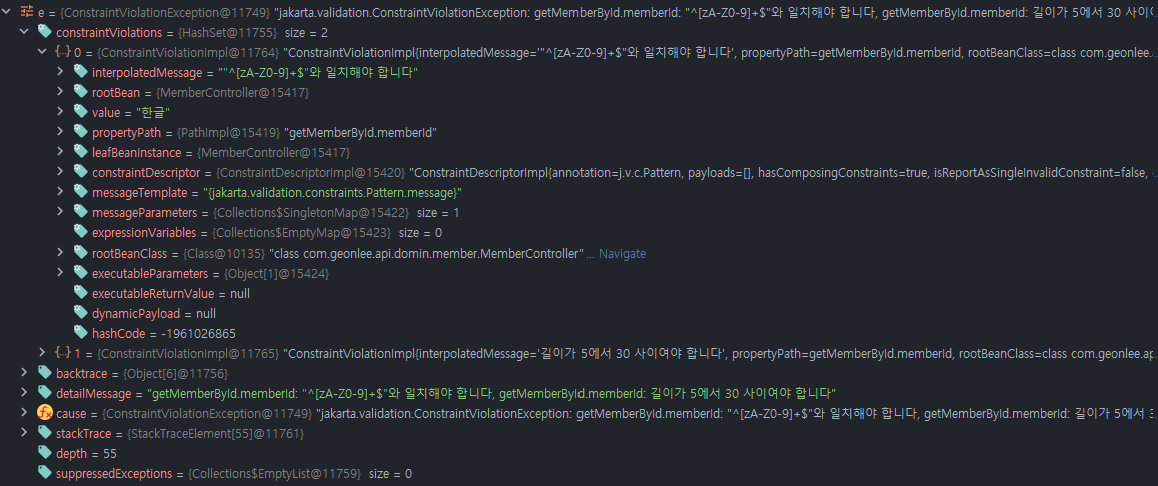 jakarta.validation.ConstraintViolationException: getMemberById.memberId: 길이가 5에서 30 사이여야 합니다