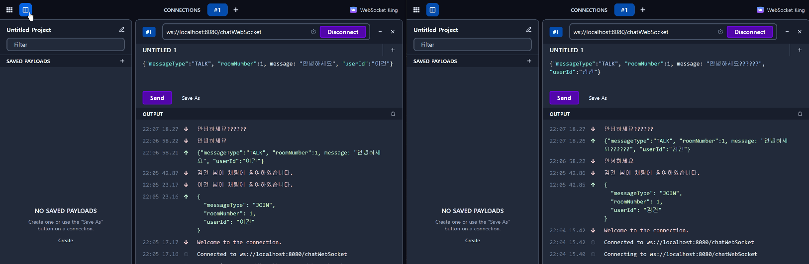 설치가 완료되면 ws://localhost:8080/chat-websocket