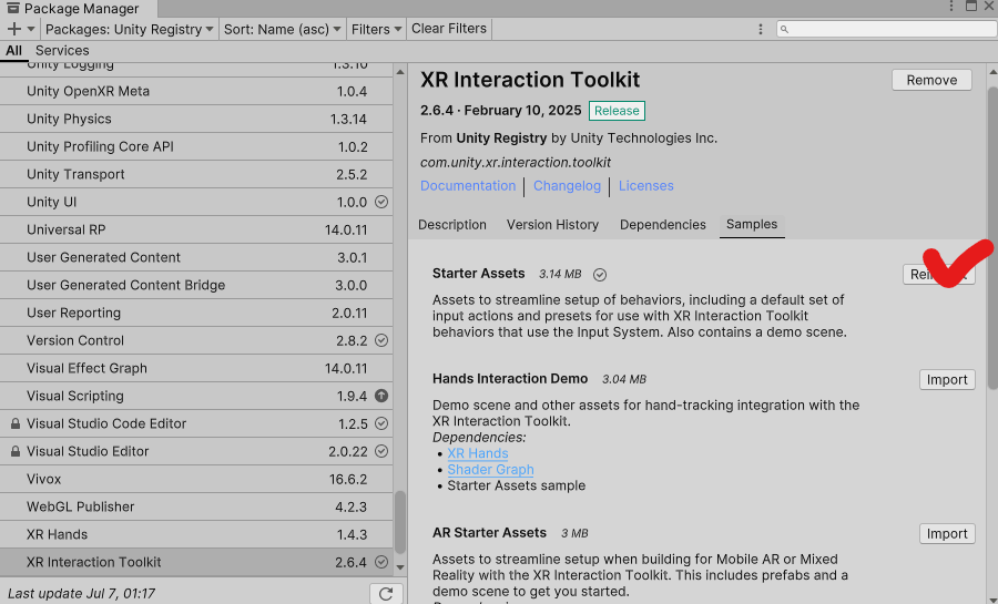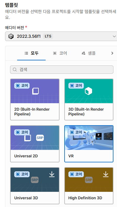 VR 항목을 선택하면 기본적으로 필요한 XR 관련 패키지와 Input 세팅을 자동으로 해준다.