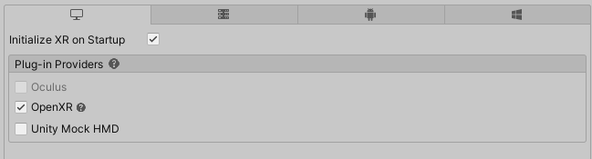 그리고 모바일 데스크탑 둘다 OpenXR를 체크하자.