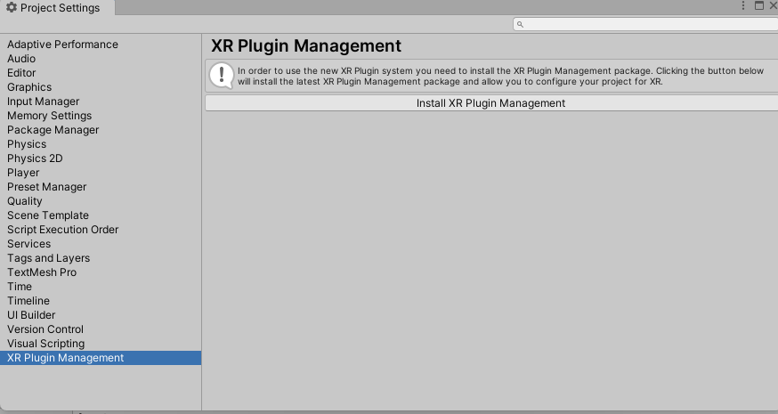Project settings에 들어가서 XR Plugin Management를 설치하자