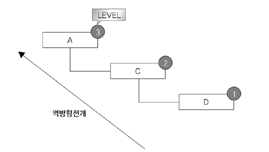 역방향 전개이므로 하위 데이터에서 상위 데이터로 전개됨