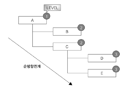 - 형제 노드(동일 LEVEL) 사이에서 정렬을 수행함