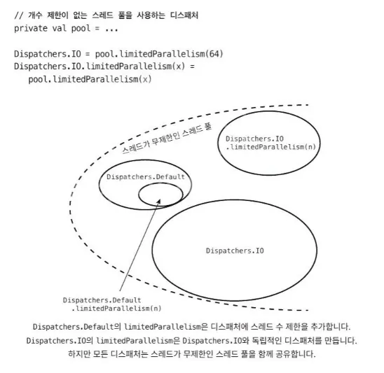 대부분의 경우, 표준 디스패처가 같은 스레드 풀을 사용하기 때문에 싱글 스레드를 가진 디스패처를 사용하는건 쉬울 뿐 아니라 효율적입니다.