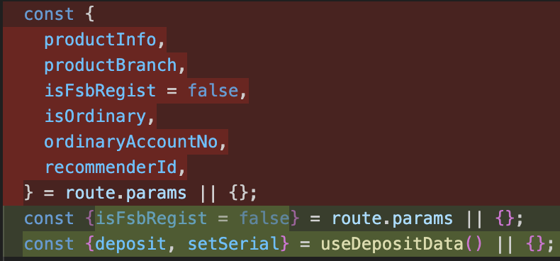 useDepositData 훅을 통해 전역 상태로 관리하면서, 화면 간 상태 전달 과정이 간결해졌습니다.비포: