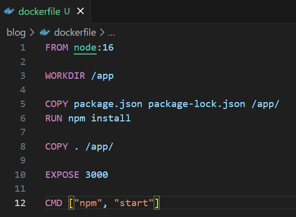 먼저 프로젝트 디렉토리에 Docker 이미지 생성을 위한 Dockerfile안에 아래 코드를 넣었다.