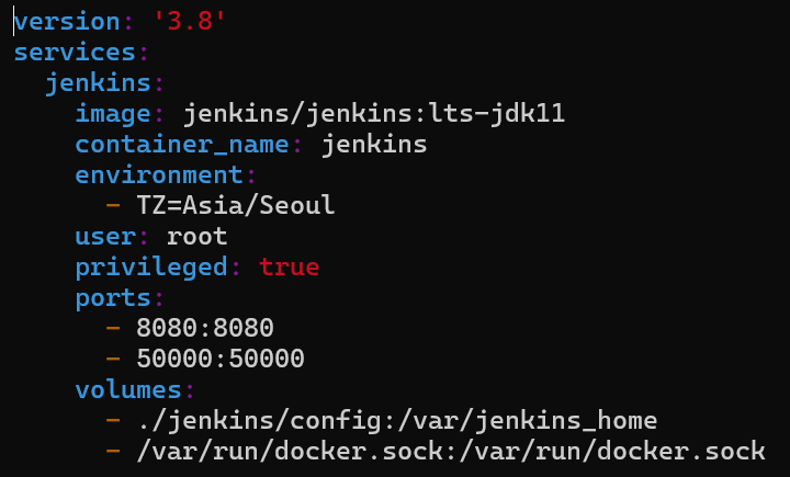 나는 jenkins와 nginx도 담은 컨테이너들을 한번에 실행하고 싶기에 docker compose 를 다운받고 yml파일에 jenkins를 먼저 해보았다.