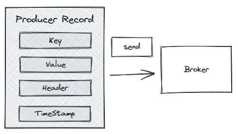 ProdcuerRecord에 담긴 정보에 따라 메시지를 보냄 (Topic,value 필수)