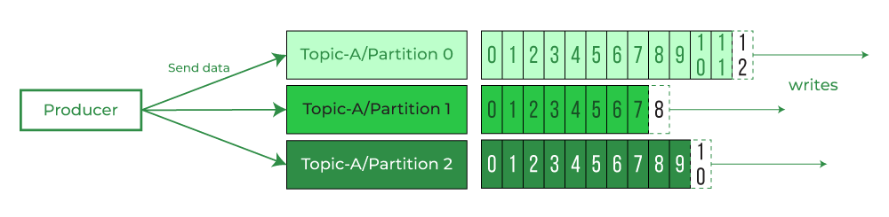 메시지는 Partitioner를 통해 토픽의 어떤 파티션으로 전송되어야 할 지 미리 결정됨