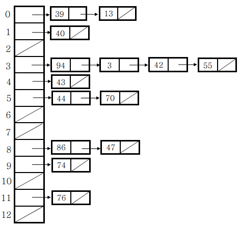 버켓 내에서 연결 리스트를 할당하여, 버켓에 데이터를 삽입하다가 해시 충돌이 발생하면 연결 리스트로 데이터를 연결하는 방식이다.