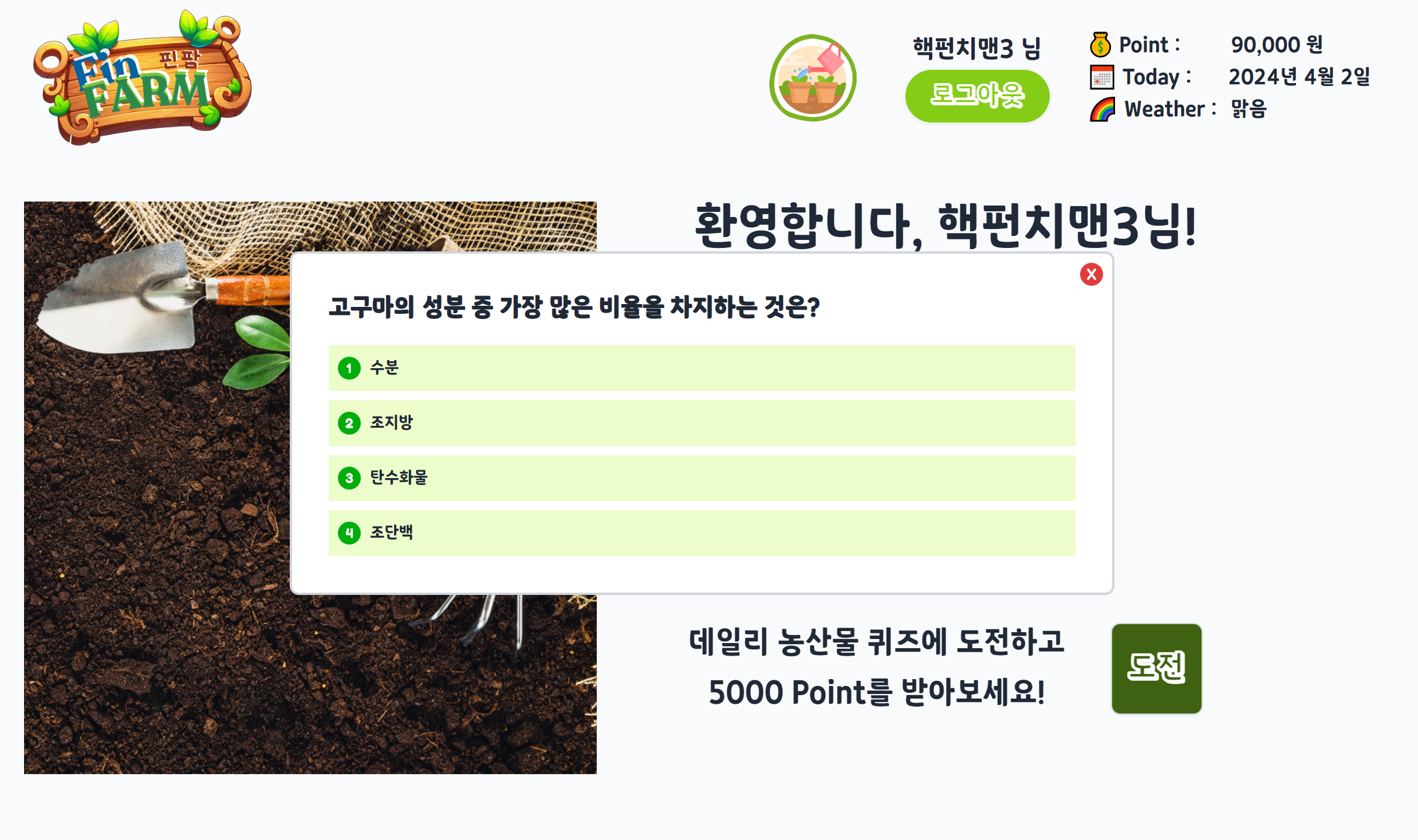 어쩌다보니 화면도 React를 사용해서 내가 만들었는데 퀴즈 기능을 백엔드, 인프라, 프론트엔드까지 모두 하게 되어서 하나의 기능에 대한 개발 프로세스를 전부 경험해볼 수 있어 좋았다.
