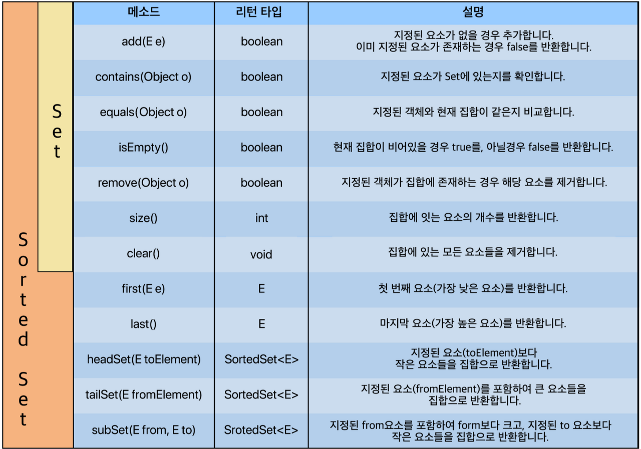Set을 상속받고 있는 SortedSet Interface가 존재.