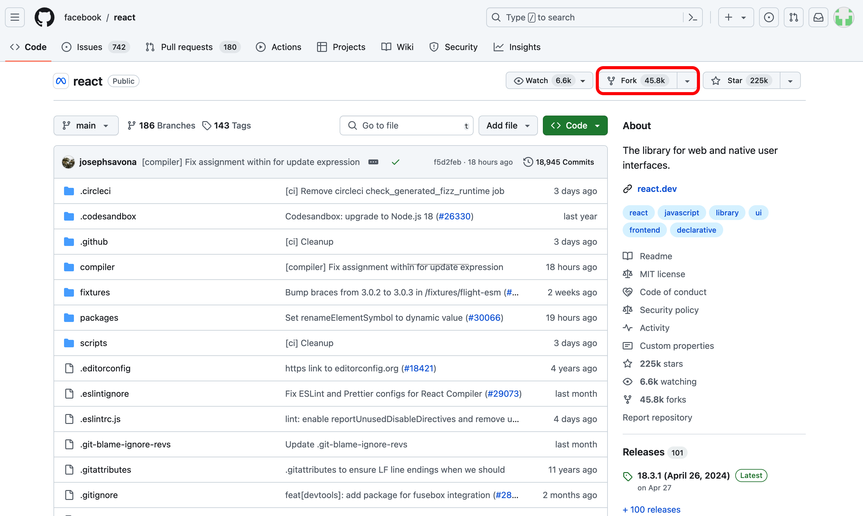 💡 그럼 fork쓰지 말고 clone쓰면 되지 않음? → 기여 권한이 없을 경우 fork한 다음에 pr을 보내 관리자들이 변경된 부분을 보고 리뷰, 승인으로 원본 프로젝트에 기여를 진행할 수 있다.