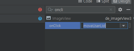 동그라미친 부분을 버튼으로 하려고 설정했고 다음 화살표 방향에다가 onClick이라고 검색한다.