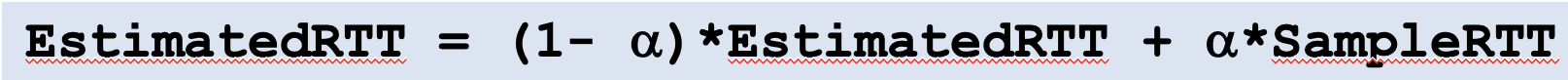 이 값은 세그먼트마다 다르고 불규칙적인데 그래서 SampleRTT값의 평균값EstimatedRTT)을 구한다.
