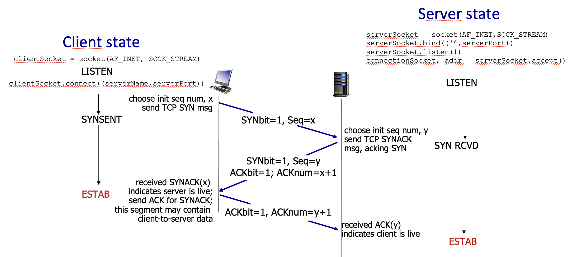 2. 서버가 이 세그먼트를 수신하면 서버는 ACK세그먼트를 보낸다.