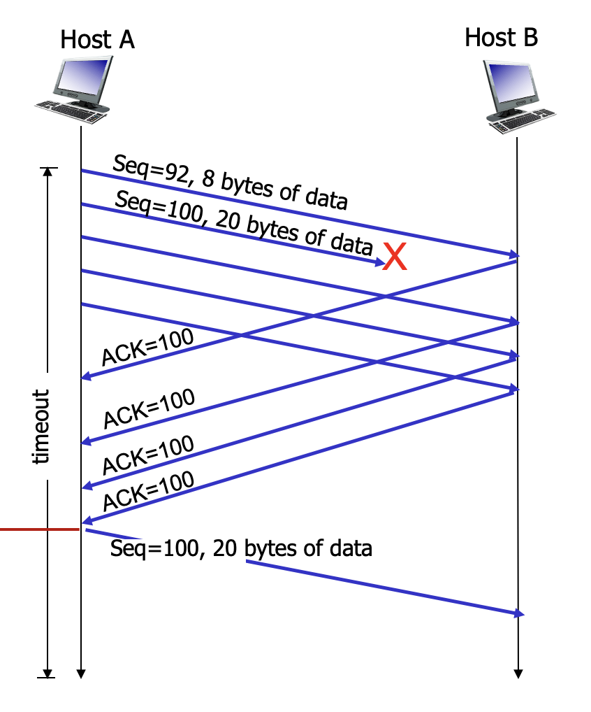 그런데 이 세그먼트가 손실된다면 타임아웃이 일어나고 같은 세그먼트를 재전송할 것이다.