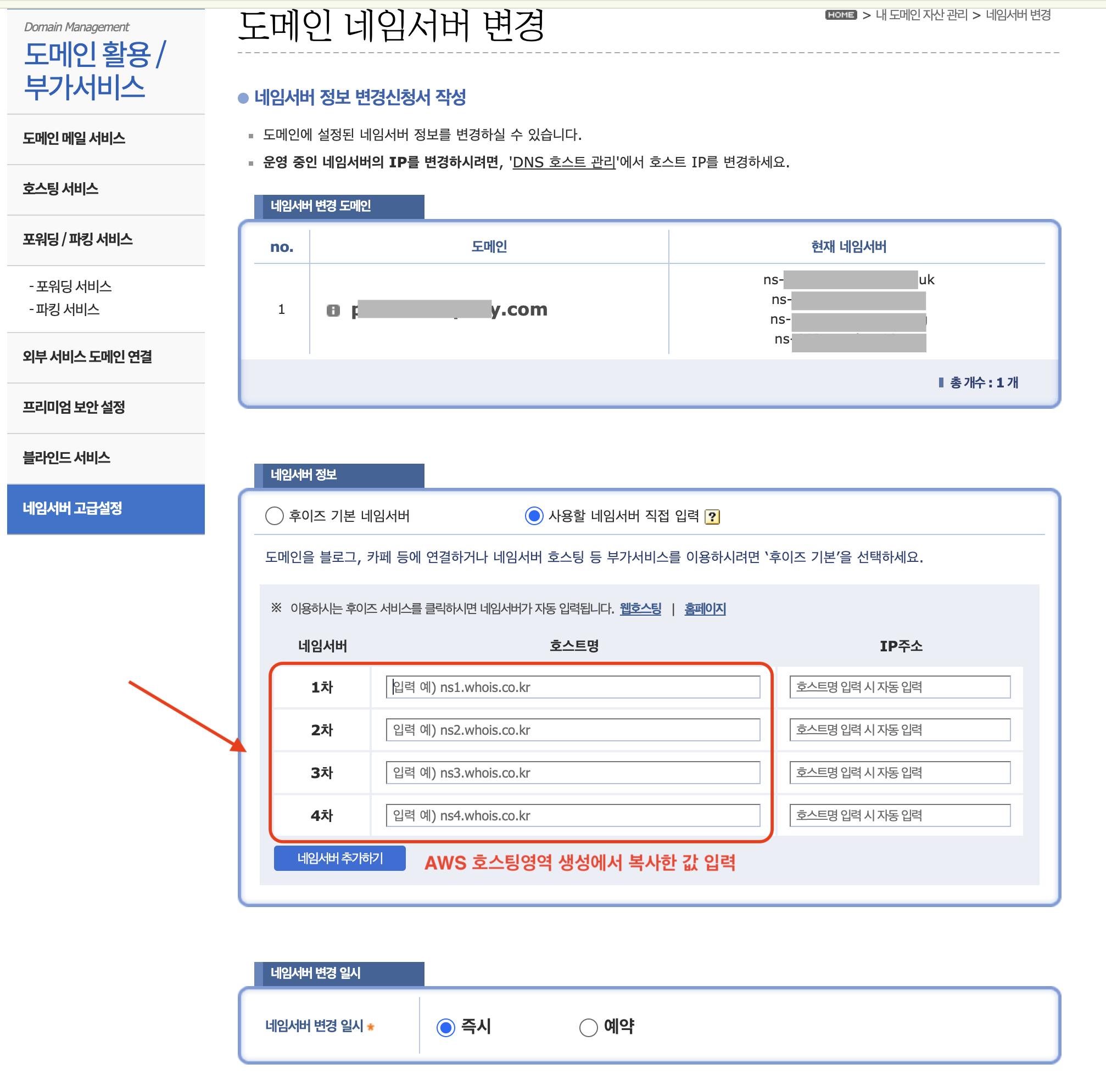 후이즈에서 네임서버 등록이 완료되면 이제 해당 도메인을 AWS에서 사용할 수 있습니다.