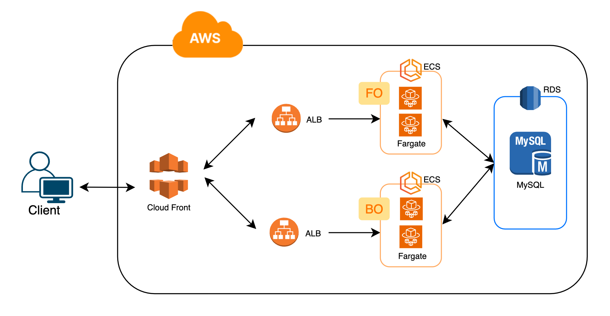 아키텍처를 살펴보면, 각 BO와 FO에 로드밸런서가 단일 진입점을 제공한다는 것을 알 수 있습니다.