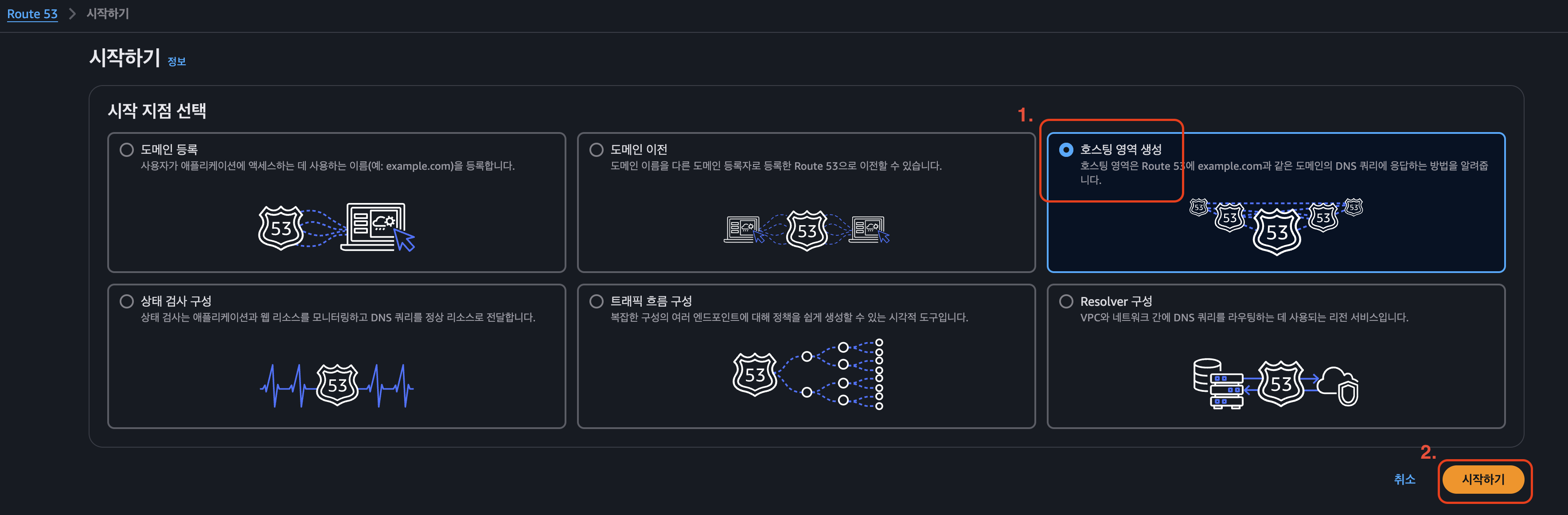 AWS 로그인 후 Route 53 접속 → 시작하기