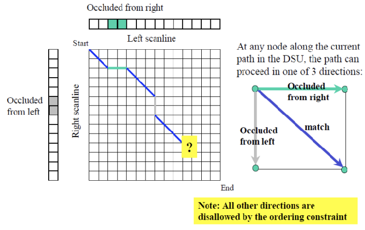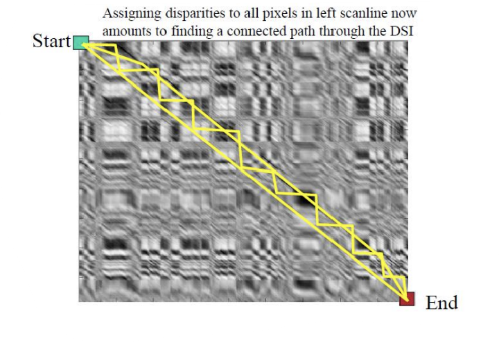 Left scanline의 모든 pixel에 disparity를 할당하는 것이 결과적으로 DSI를 통해 연결된 path를 찾는 것과 같다.