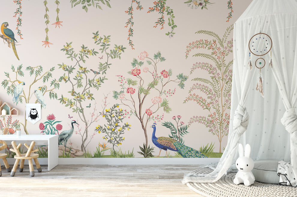 For a truly opulent and artistic statement, Chinoiserie Wallpaper is an exquisite choice. Inspired by traditional Chinese art, these designs often feature intricate hand-painted scenes of birds, pagodas, blossoming trees, and fantastical landscapes. Chinoiserie wallpaper creates a sense of exotic elegance and grand sophistication, making it perfect for formal living areas or a luxurious bedroom.
