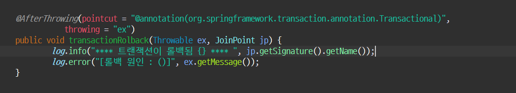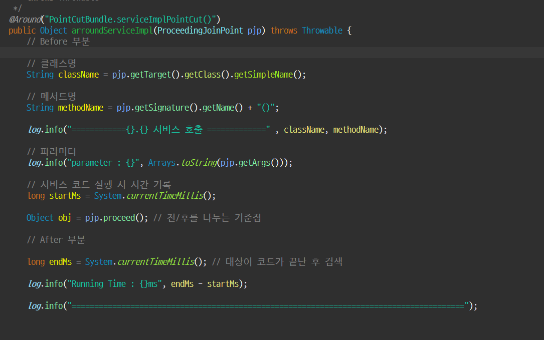 매개변수로 JoinPoint jp 를 가져다가 쓸수 있다