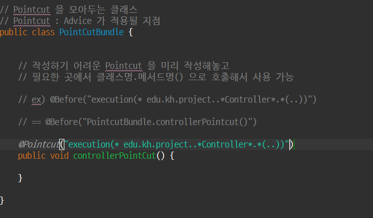 pointCut 을 보아두는 클래스이다 이렇게쓰는 이유는