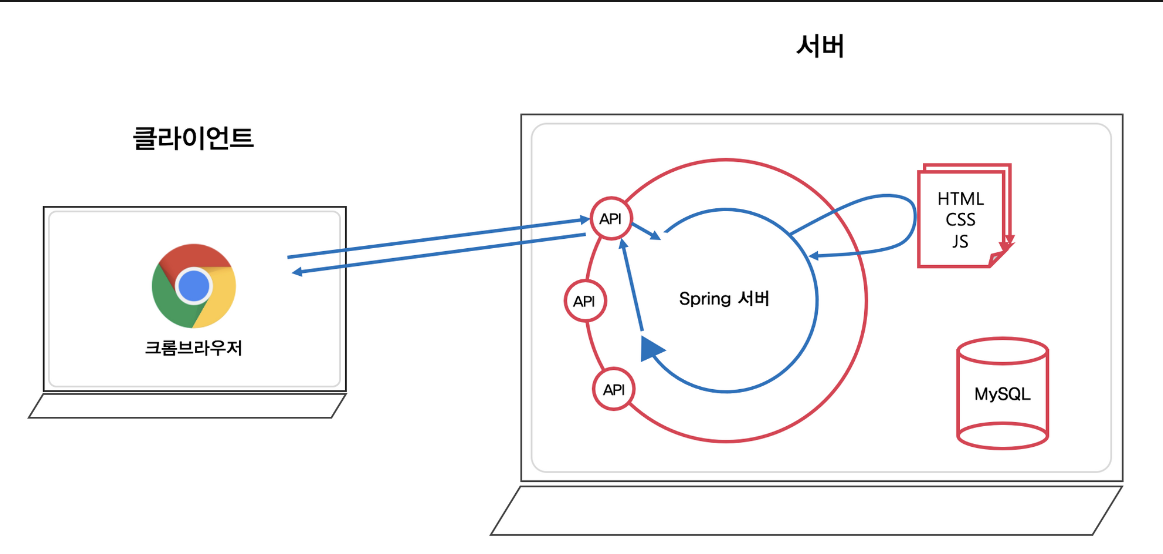 아직 정확히 이해는 하지 못하였지만 클라이언트가 서버에게 요청을 하면 서버는 그 요청데이터를 반환화게 된다. 그 사이에 API라는 일종의 약속이 있는데 이러한 요청들을 API를 통해 정해진 결과물을 반환하게 된다.