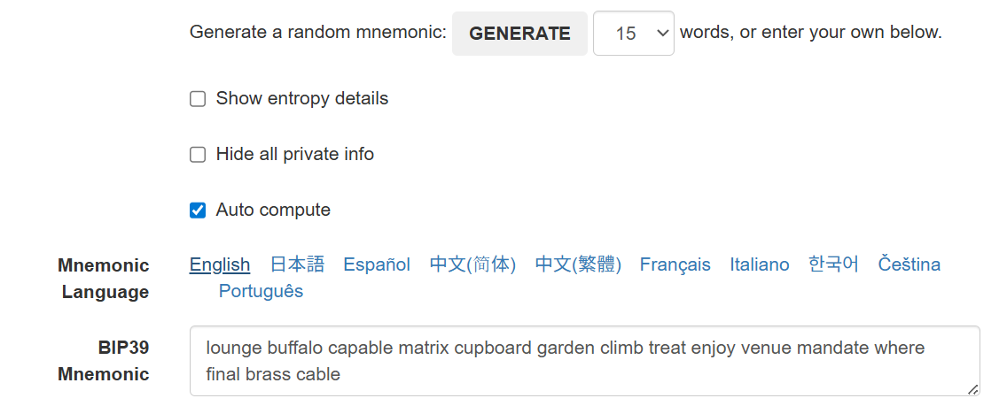 혹은 암호화폐 지갑을 복구하기 위한 12~24개의 영어 단어 조합