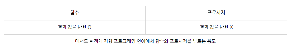 // 프로시저는 returns 값이 없다!