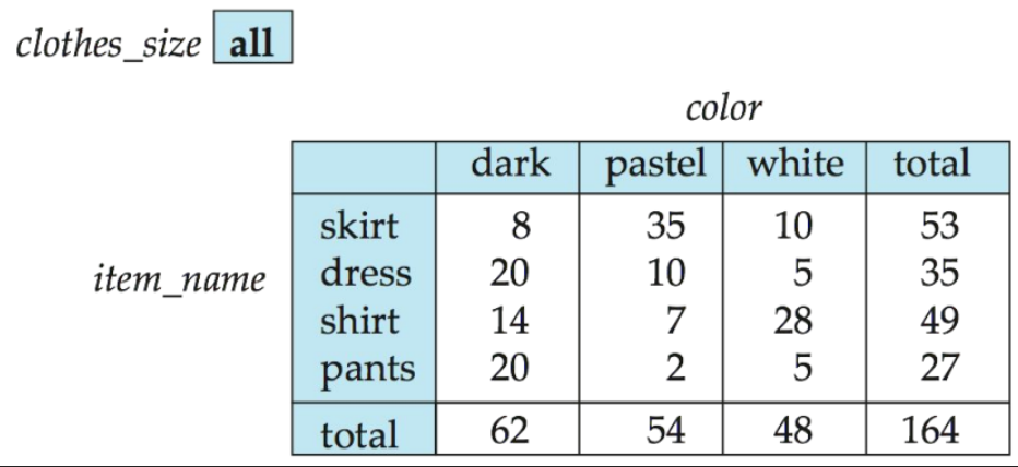 group by cube(item_name, color, clothes_size)