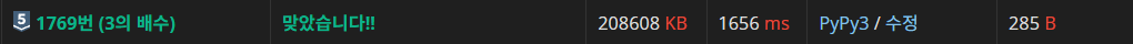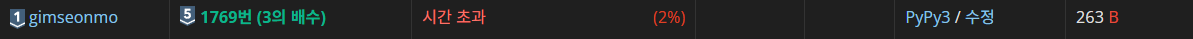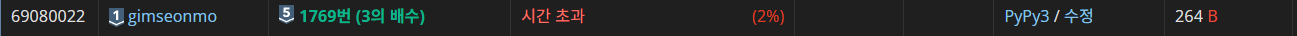 솔직히 여기서 시간초과가 날 줄은 몰랐다... 그것도 리스트를 사용한 코드랑 똑같은 2%대에서.. 생각해보니 int형을 str로, str을 int형으로 변환하는 것이 너무 많아서 시간이 오래 걸릴 것 같아서 이번엔