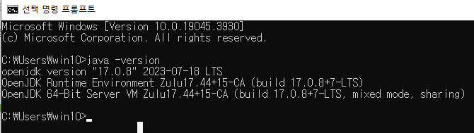 cmd(명령 프롬프트)에서 java -version